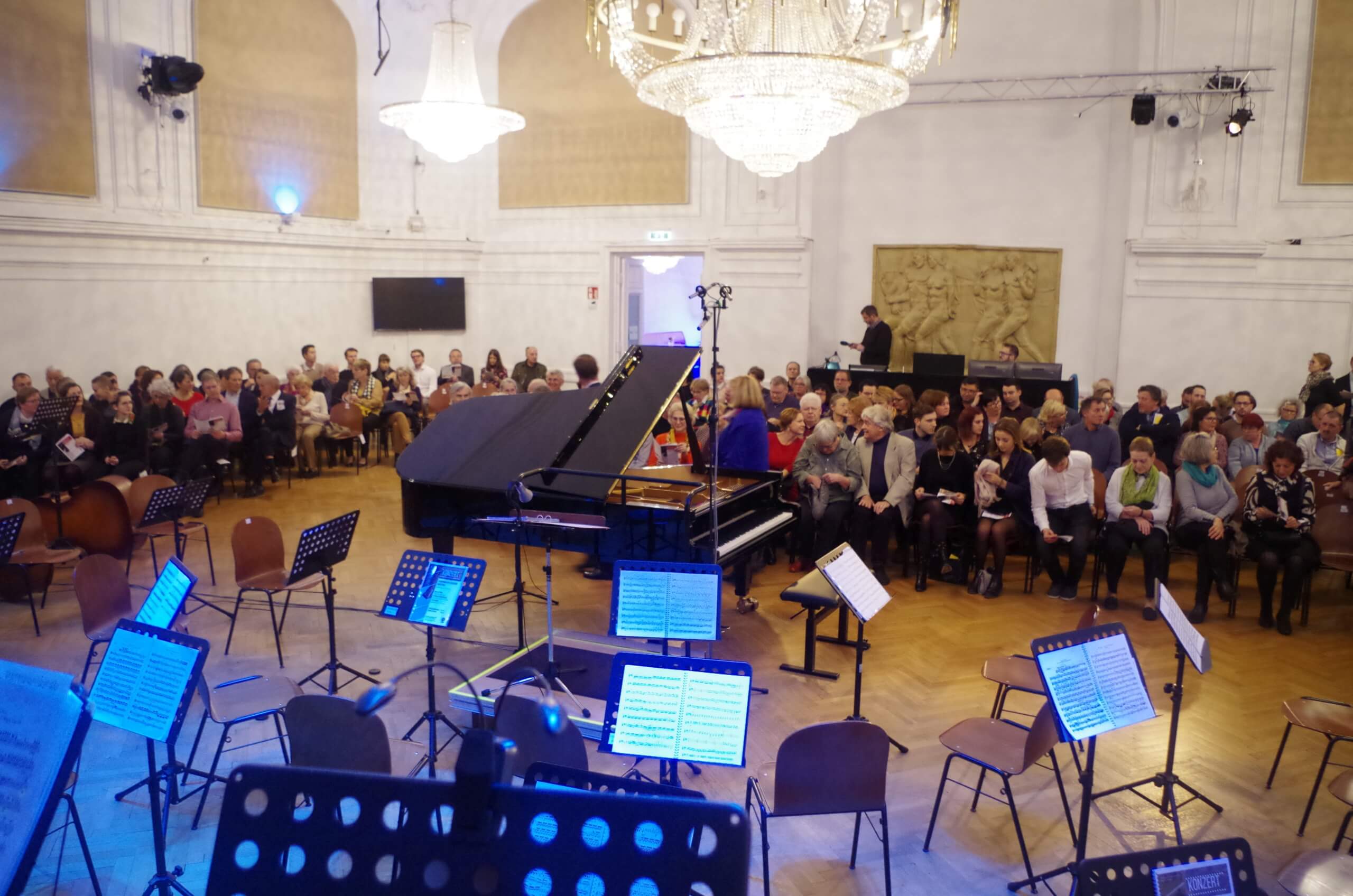 Schon Wochen im voraus war das diesjährige Herbstkonzert des Concentus21 ausverkauft. Demzufolge war der stimmungsvolle Lorely Saal bis auf den letzten Platz gefüllt. Entsprechend dem Motto des Abends „Loewe trifft Beethoven“ intonierten Orchester und Solist zunächst Beethovens 4. Klavierkonzert.