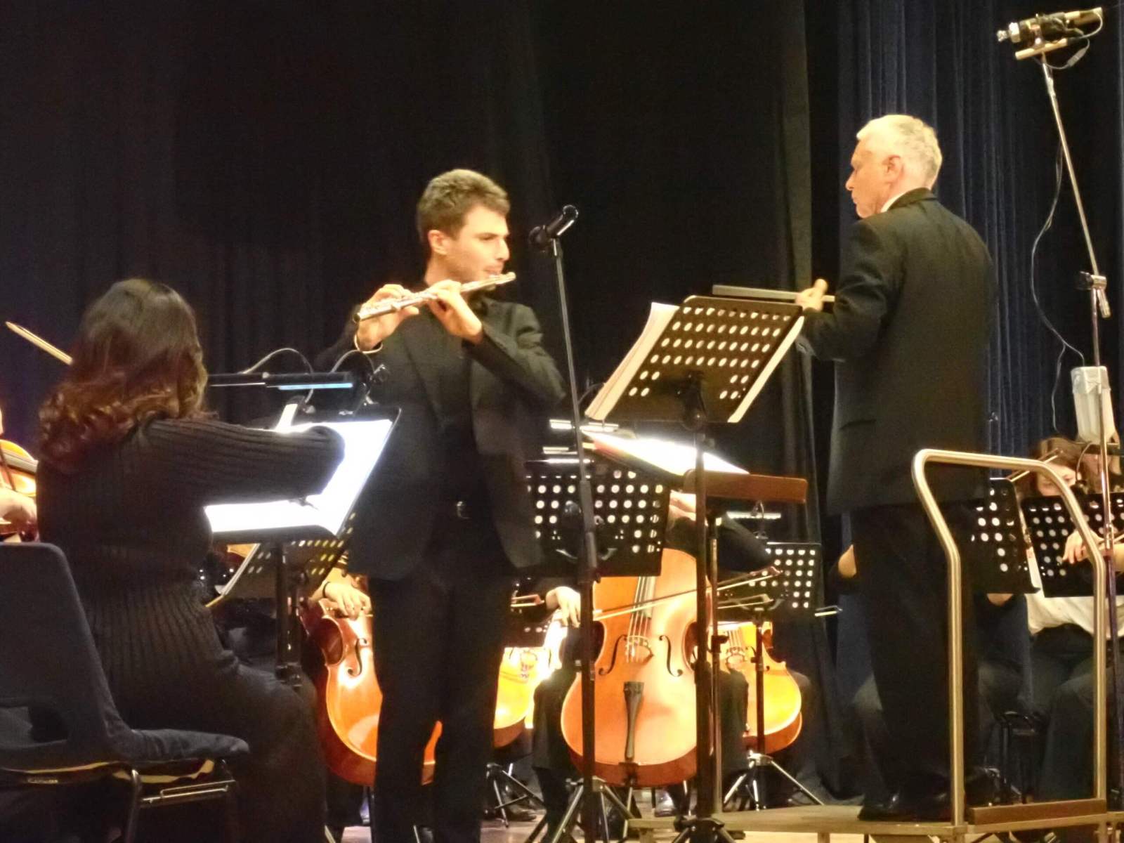 Im Anschluss stand mit dem Flötenkonzert op. 86 in e-Moll von Franz Krommer ein Werk am Programm, das den Solisten voll in den Mittelpunkt rückte. Angelo Sinapi überzeugte hier mit technischer Brillanz und einer bemerkenswerten Ausdruckstiefe. Besonders eindrucksvoll war sein warmer, klarer Ton, der sich mühelos über das Orchester legte, ohne jemals aufdringlich zu wirken. Die schnellen Läufe wirkten leicht und spielerisch, während die ruhigeren Passagen eine beinahe gesangliche Qualität entfalteten. Orchester und Solist fanden dabei zu einer ausgewogenen Balance, die das Konzert zu einem musikalischen Dialog werden ließ.